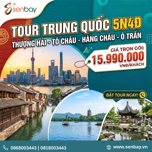 Trung Quốc luôn là điểm đến hấp dẫn bậc nhất châu Á, nơi hòa quyện giữa nhịp sống hiện đại kỷ nguyên số và những giá trị văn hóa cổ xưa hàng ngàn năm. Trong đó, cung đường Thượng Hải – Tô Châu – Hàng Châu – Ô Trấn được ví như "viên ngọc quý" của vùng Giang Nam. Để giúp quý khách có một chuyến đi trọn vẹn, Senbay triển khai lịch trình tour du lịch Trung Quốc đặc sắc 5 ngày 4 đêm với mức giá ưu đãi và dịch vụ chất lượng cao.