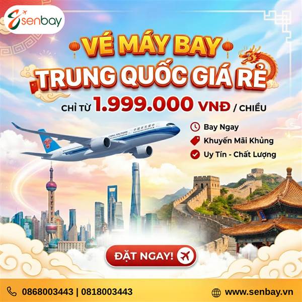Trung Quốc luôn là điểm đến hấp dẫn với bề dày lịch sử, văn hóa đồ sộ và những kỳ quan thiên nhiên choáng ngợp. Tuy nhiên, với những người thường xuyên di chuyển như doanh nhân, du học sinh hay tín đồ du lịch, chi phí đi lại luôn là bài toán cần cân nhắc. Trong bài viết này, đội ngũ Senbay sẽ chia sẻ lộ trình chi tiết để bạn sở hữu tấm vé máy bay đi Trung Quốc khứ hồi với mức giá "hời" nhất.