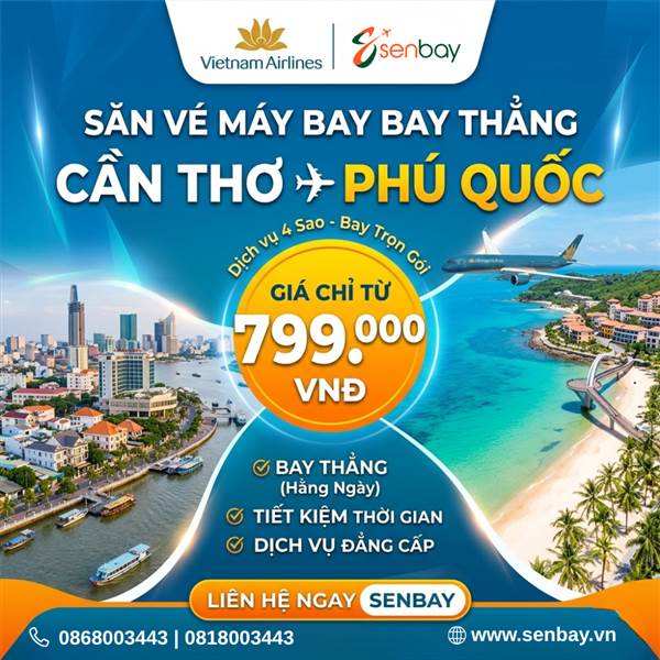 Bạn đang lên kế hoạch cho một kỳ nghỉ rực rỡ tại "Đảo Ngọc" nhưng ngại việc phải di chuyển qua nhiều chặng hay lênh đênh trên tàu cao tốc hàng giờ liền? Việc săn vé máy bay Cần Thơ Phú Quốc bay thẳng chính là chìa khóa vàng giúp bạn tận hưởng trọn vẹn từng giây phút nghỉ dưỡng. Với sự đồng hành của Vietnam Airlines và hệ thống đặt vé thông minh tại Senbay, hành trình của bạn sẽ trở nên dễ dàng và tiết kiệm hơn bao giờ hết.