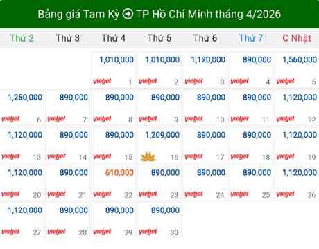 Tháng 4 là thời điểm chuyển giao rực rỡ, nhu cầu di chuyển từ Quảng Nam vào TP. Hồ Chí Minh bắt đầu tăng nhiệt. Dựa trên dữ liệu trực tiếp từ hệ thống, chúng ta thấy mức giá cực kỳ cạnh tranh. Ghi nhận trong bảng giá, ngày 22/04 xuất hiện mức giá kỷ lục chỉ 610.000 VNĐ. Đây là cơ hội vàng để khách hàng tiết kiệm ngân sách tối đa cho chuyến đi của mình.