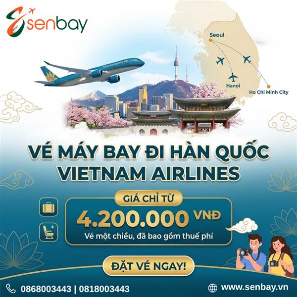 Hàn Quốc không chỉ là "cái nôi" của văn hóa K-Pop hay những bộ phim truyền hình lãng mạn, mà còn là trung tâm kinh tế, du lịch hàng đầu châu Á. Với nhu cầu di chuyển ngày càng tăng cao từ Việt Nam sang xứ sở Kim Chi cho mục đích công tác, du lịch và thăm thân, việc tìm kiếm một tấm vé máy bay đi Hàn Quốc Vietnam Airlines chất lượng là ưu tiên hàng đầu. Tại Senbay, chúng tôi cam kết mang đến cho bạn hành trình bay đẳng cấp với mức giá tối ưu nhất.